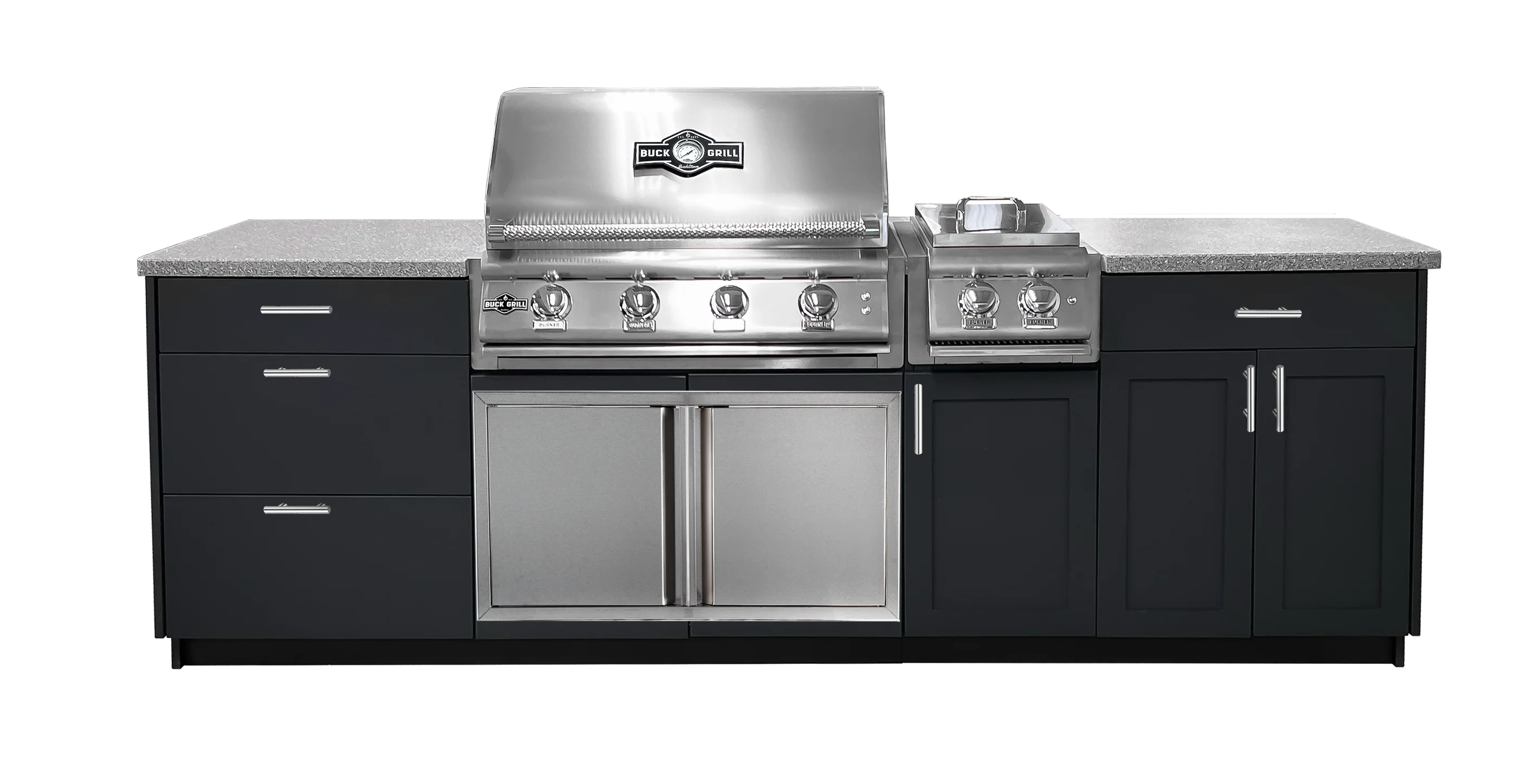 For the look and feel of a heightened outdoor dining experience, the complete grilling station is central: The Buck Grill sets the tone for an outdoor gathering that is easy, fun and completely ready-to-go, in style!